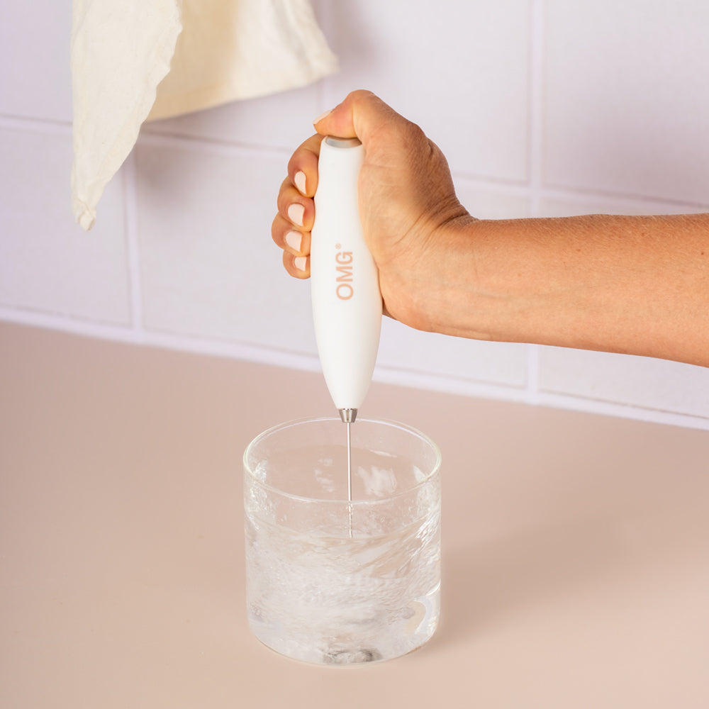 Nuestro batidor eléctrico te asegura mezclas perfectas sin grumos para tus bebidas con Super Collagen, Super Creatina, Golden Milk y más. Fácil de usar, logra una textura suave y espumosa en segundos, para que disfrutes cada sorbo con total satisfacción. ¡Mezcla, espuma y siente la diferencia!